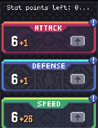 My stats were 16 attack, 18 defense, and 18 speed due to stat bonuses.